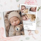 Um simples anúncio de nascimento com a foto do seu recém-nascido com o nome e as estatísticas de natalidade em um roteiro branco-na moda. No verso, adicione 3 imagens adicionais e uma mensagem personalizada. Basta clicar no botão editar/personalizar para personalizar este design.