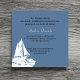 Um belo cartão de anúncio de funeral com um elegante design de iate branco. Uma escolha adorável para uma vida cheia de aventura.