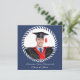 Cartão de anúncio de Graduação de Foto Azul Moderno 1. Com design repetido e detalhes personalizáveis no verso.