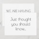 Cartão moderno minimalista de gravidez - Informe aos seus entes queridos que "estão no forno" com este cartão de anúncio de gravidez simples e bonito. Sinta-se livre para personalizar e personalizar. As opções de edição estão disponíveis.