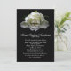 Anúncio da morte negra de um jato sombrio com foto de uma rosa branca, no topo, coberta de orvalho. Personalize o texto para atender às suas necessidades. Pode ser usado como cartão de luto funerário também. Envelopes com linhas pretas correspondentes disponíveis.