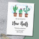 Este cartão de anúncio móvel do orçamento é decorado com cactos de aquarela, um céu azul, e Novas Raízes na tipografia da na moda. Facilmente personalizável com seu novo endereço. Use a Ferramenta Design para alterar o tamanho, o estilo ou a cor do texto. À medida que criamos a nossa trabalho de arte, não encontraremos esta imagem exata de outros designers. Original Watercolor © Michele Davies.