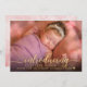 Moderno, Elegante, Namorada, Namorada, Anúncio 3 Cartões de Colagem de Fotos. Cartão de modelo de anúncio de nascimento de fotos, elegante e de dois lados, com uma (1) foto favorita de seu bebê (cheio) na frente, com uma folha de ouro falso bonito, escrita à mão, com letra de texto de tipografia, "apresentando", no gradiente preto. É fácil personalizá-lo com o nome do seu bebê e estatísticas de natalidade. Na parte de trás, três (3) fotos em uma cor-de-água cor-de-rosa-pincelada parecem fundo.