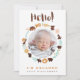 Apresente o nascimento do seu lindo bebê à sua família e amigos com este belo e elegante cartão de nascimento decorativo de floresta e safari. Nós desenhamos esta bela decorativa e intrincada floresta e coroa de safari, coroa floral, com um lugar perfeito para colocar a foto do seu novo menino. Os animais de grão-de-madeira (elefante, coala, girafa, alce, esquilo, ovelha e porco) são adicionados a uma coroa floral desenhada com uma paleta colorida ousada e moderna de chaleiras, verdes, amarelos-ouros, pinks de salmão, O verso do cartão de nascimento fotográfico usa um padrão moderno de distribuição de grãos de madeira escura com os detalhes do seu novo monte de alegria. Todas as ilustrações contidas neste cartão de anúncio da coroa da sola decorativa de animais decorativos modernos de floresta são obras de arte feitas à mão pela Moodthology. Você pode personalizar o tamanho do texto, a cor do texto, a fonte e o layout para sua preferência de design pessoal.