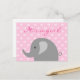 Cartão de anúncio de nascimento de elefante rosa e