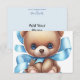 Aqui está uma maneira especial de anunciar o nascimento do seu bebê. Envie um anúncio cativante para a família e os amigos. Teddy Bear Blue design na frente com seu anúncio especial do nascimento junto com sua foto na parte de trás. Use a modelo para personalizar.