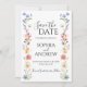 Com este elegante cartão de Save the Date, lindamente desenhado com flores silvestres em aquarela, anuncie o seu grande dia com estilo! Flores suaves e românticas num motivo de flores silvestres estabelecem o tom para uma celebração de casamento encantadora e inspirada na natureza. Perfeito para casamentos rústicos, de jardim, boho ou ao ar livre, este design traz um toque de beleza natural para o seu anúncio especial. Personalize facilmente com seus nomes, data e detalhes para torná-lo verdadeiramente seu.