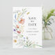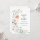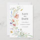 Um delicado cartão de anúncio de noivado com flores silvestres em aquarela suave em tons pastéis suaves. Perfeito para casais que planejam uma cerimônia romântica no prado, cottagecore, rústica ou ao ar livre. O layout limpo e os detalhes botânicos pintados à mão criam um visual elegante e atemporal. Personalize facilmente para combinar com o estilo do seu casamento.