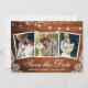 Cartão de Anúncio de Noivado com Luzes de Madeira Rústica e Renda 3 Fotos