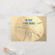 Anúncios de novo endereço com imagem de dólar de areia. Anuncie um novo endereço na costa com cartões planos personalizados que têm modelos de texto na frente e no verso. Um dólar de areia realista na frente com fonte impressa moderna em azul escuro. Uma vista do oceano em direção às casas na praia é a imagem de fundo para o texto no verso.