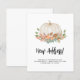 Informe a família e os amigos sobre seu novo endereço com este cartão de anúncio em movimento de queda. É decorada com uma abóbora e folhagem a aquarela. Diz "New Season New Home" na tipografia da na moda. Facilmente personalizável. Use a Ferramenta Design para alterar o tamanho, o estilo ou a cor do texto. À medida que criamos a nossa trabalho de arte, não encontraremos esta imagem exata de outros designers. Original Watercolor © Michele Davies.