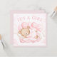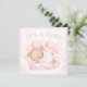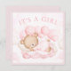 Cartão de Anúncio do Urso Rosa Bebê. As cores cor rosa, marfim e bege pastel com uma menina adorável nas nuvens com os balões é tão adorável para um anúncio de menina. Personalize facilmente o texto. Itens correspondentes para itens de chá de fraldas e bebê estão disponíveis na minha loja. Kate Eden Art
