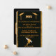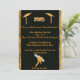 Anúncio de graduação Dourada e negra com trim dourado, bonés e diploma. Personalize todas as legendas.