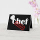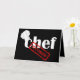 Um design gráfico do chef de texto com um chef que marcou Recansado em um cartão de saudação para o chef. A placa tem um verso personalizável e um modelo de texto para seu nome. ©2012