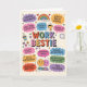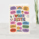 Celebre seu colega de trabalho favorito com este vibrante e divertido cartão de saudação "Melhor Amiga do Trabalho"! Com letras coloridas desenhadas à mão e frases divertidas como "Alma gêmea do escritório", "Sobrevivente de reuniões", "Campeã de corridas de café" e "Lenda da hora do almoço", este cartão é perfeito para mostrar apreço ao colega que torna os dias de trabalho melhores. Seja para um aniversário, aniversário de trabalho, presente de agradecimento ou simplesmente porque sim, este design alegre captura o vínculo especial entre amigos do trabalho. A mistura caprichosa de cores brilhantes, corações, estrelas e elogios divertidos torna-o um cartão ideal para o seu vizinho de mesa, parceiro de escritório ou parceiro profissional no crime!