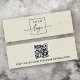 Miniplaca de exibição do produto de brinco com código QR e modelo de logotipo personalizado em uma IMAGEM de linhagem IMPRESSA com cor creme. As guias de brinco podem ser ajustadas adicionando e removendo espaços no campo modelo e movendo todo o elemento na ferramenta design.