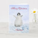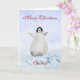 Cartão de pinguim de Natal pintado à mão em aquarela.