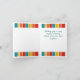 Cartão de Saudação do Arco-Íris, multicolorido e listrado - "Desejando-lhe um aniversário muito feliz cheio de amor e riso." O dentro de texto é personalizável. As listras coloridas brilhantes na frente da placa são ecoadas no dentro com pequenas listras na parte superior e inferior.