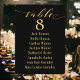Fonte de caligrafia preta com floreios contra papel branco crocante para cartões de mesa de assentos.