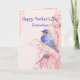 Watercolor Bluebird Garden Flowers and Bird para desejar à sua madrinha Dia de as mães Feliz