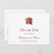 Cartão postal de aviso de casamento com tema da natureza com folha caindo em aquarela. Ótimo para casamentos elegantes de outono e outros eventos especiais.