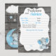 Muito fofo Blue Boy Elephant/moon, predições de Chá de fraldas de nuvens e cartão de conselho com estrelas e fundo de madeira. Todos os campos são editáveis.