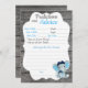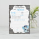 Azul escuro muito bonito e elefante/lua azul-bebê, previsões de Chá de fraldas de nuvens e cartão de conselho com estrelas e fundo de madeira. Todos os campos são editáveis.