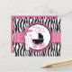 Carruagem de bebê com zebra e impressões de pontos e um cartão de nota de arco rosa-quente com "palavras de conselho".