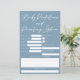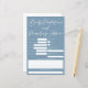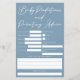 Previsões de chás de fraldas azuis minimalistas e cartão de parentalidade com tipografia branca-chic. Um cartão bonito para os convidados do seu chá de fraldas deixarem a data de nascimento, comprimento, peso, cabelo e previsão da cor dos olhos, juntamente com conselhos dos pais para a mãe e o pai. Que traços espera que o novo bebê herde da mãe e do pai? Passe com suas palavras de sabedoria e estatísticas de natalidade.