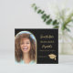 Um cartão de aviso prévio com foto para uma festa de formatura.