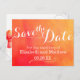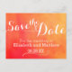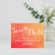 Lindo convite de aviso prévio de casamento com arte de aguada de aquarela e flor em cinza, branco e laranja. Edite este cartão de aviso prévio de casamento com suas próprias palavras. Design único e pintura original de aquarela por Sarah Trett.