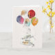 Este é um design de cartão de aniversário de 1 ano de funcionário no estilo de scrapbooking digital. O design apresenta cinco balões coloridos que foram desenhados em um estilo divertido e à mão livre. Além disso, há dois rótulos na parte inferior com detalhes de efeito de linha onde o número de anos e 'Feliz Aniversário' estão escritos em preto em uma fonte estilo máquina de escrever. Há também algumas estrelas comemorativas espalhadas sobre os rótulos e os balões.