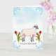 Um cartão de batismo para uma criança com cordeiro e flores e dentro bíblia verso.