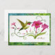 Um cartão de saudação tamanho postal com Beija-flor e flores em vinheta com saudação que pode ser facilmente alterada para qualquer ocasião.