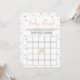 cartão de bingo para chá de bebê com arco-íris pastel e corações.