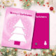Mude seus votos de Natal com este design moderno de Natal. Ainda usando as cores tradicionais da temporada, este design usa rosa e branco. A árvore branca tem enfeites pendurados e está em um redemoinho de estrelas e flocos de neve. Há espaço para sua mensagem de férias no verso com a palavra 'Amor' que pode ser excluída se você não quiser usá-la. Cumprimentos de Natal modernos e simples.