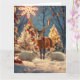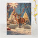 Este é um cartão de cumprimentos que mostra uma cena de Natal com coelhos brancos e uma rena.
