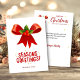 Compartilhe votos calorosos de férias com este elegante cartão de Natal com uma fita vermelha encimada por um visgueiro festivo e bagas vermelhas brilhantes no centro. Abaixo, uma alegre mensagem de “Boas Festas” rodeada por centelhas amarelas suaves, criando um design clássico e alegre de Natal perfeito para enviar aos entes queridos. GCard-007