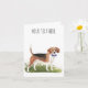 Personalize este cartão de saudação para enviar a qualquer amante de beagle por aí! Com efeito aquarela de beagle com um laço azul. Confira a loja para uma versão com laço rosa.