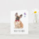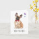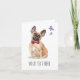 Personalize este cartão de boas festas para enviar a qualquer dono ou amante de bulldog francês! Com efeito aquarela do frenchie com um laço vermelho.