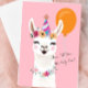 Lhama vai dizer... é hora de festa! 🎉 Este adorável cartão de celebração apresenta uma lhama estilosa e divertida com um balão festivo e um trocadilho divertido que é perfeito para aniversários, congratulações ou qualquer momento digno de celebração. Com seu design alegre e tema de animal da moda, este cartão certamente vai deliciar os amantes de animais, fãs de trocadilhos e crianças de todas as idades.