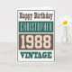Um cartão de aniversário com o ano de nascimento. Se você está procurando um cartão que apresente o ano de nascimento do destinatário, então este é para você. Adicione sua escolha de nome e mensagem interna. 1988