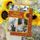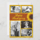 Cartão de foto de Ação de Graças feliz com girassol. Cartão laranja enferrujado e amarelo com saudação e cinco modelos para fotos da família, crianças, animais de estimação ou o que você quiser. As fotos de amostra são em preto e branco, mas as suas não precisam ser. Este design também é oferecido como download instantâneo para compartilhar digitalmente.
