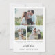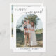 Este Cartão de Boas Festas apresenta uma foto arqueada na frente e 3 fotos no verso. Para este design, "Feliz ano novo" não é editável, mas todo o restante do texto pode ser personalizado.
