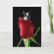 Cartão de cumprimentos de Boston Terrier com rosa vermelha