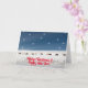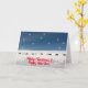 Cartão de Boas Festas dobrável de Natal e Ano Novo representando uma fila de cavalos selvagens cruzando as colinas cobertas de neve em Montana, com flocos de neve caindo do céu azul e nublado de inverno. O texto diz "Feliz Natal e Feliz Ano Novo", totalmente personalizável e o cartão está em branco por dentro.