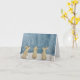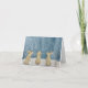 Cartão de cumprimentos com charme de livro de histórias! Coelhinhos pintados à mão olhando para a primeira neve. Uma cena pacífica e mágica. Um sentimento invernal caprichoso e sereno.