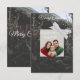 "Traga o espírito de Natal à vida com este cartão de foto de família deslumbrante! Este presente personalizado apresenta um fundo de folhas de Natal exuberantes com neve caindo suavemente, emoldurado em prata elegante e encimado por um laço festivo. Adicione facilmente sua própria foto de família no centro para criar um cartão de Natal memorável e lindo. Perfeito para enviar votos calorosos, saudações de temporada e celebrar o Ano Novo 2026 com amigos e familiares."