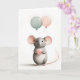 Arte minimalista de estilo Boho de um rato com balões rosa e verde. Cartão de felicitações em branco para aniversário, aniversário de casamento, novo bebê, agradecimento, etc.