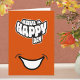 Um Cartão de Boas Festas Dobrado com Texto Feliz (Aniversário) Moderno com um gráfico de sorriso e uma mensagem 'Tenha um Dia Feliz'. Ele vem em uma variedade de cores brilhantes e também pode ser personalizado para qualquer cor que você desejar. O cartão pode ser usado como um cartão de aniversário ou como um cartão para qualquer ocasião. A mensagem interior é editável e pode ser personalizada por você.